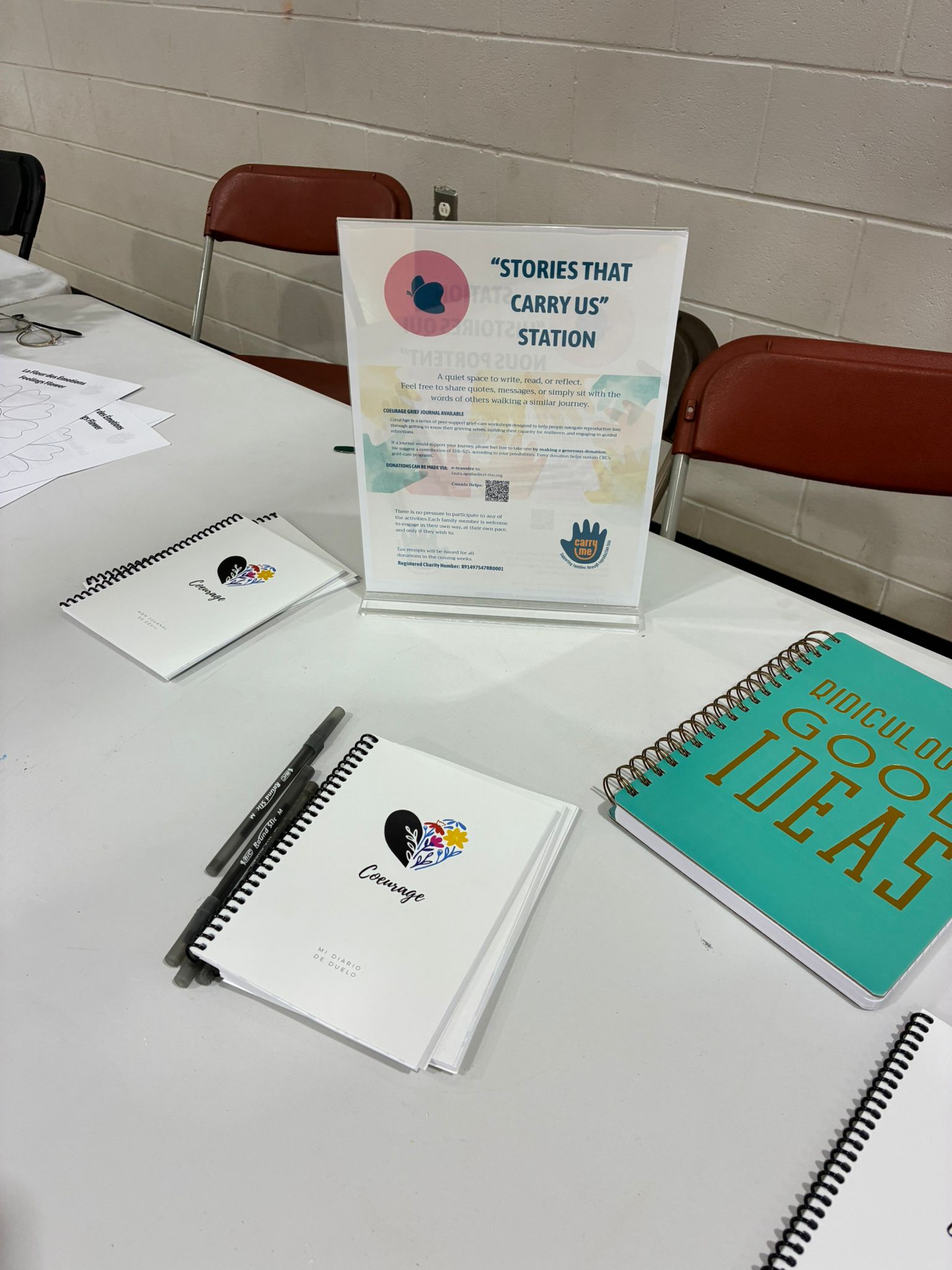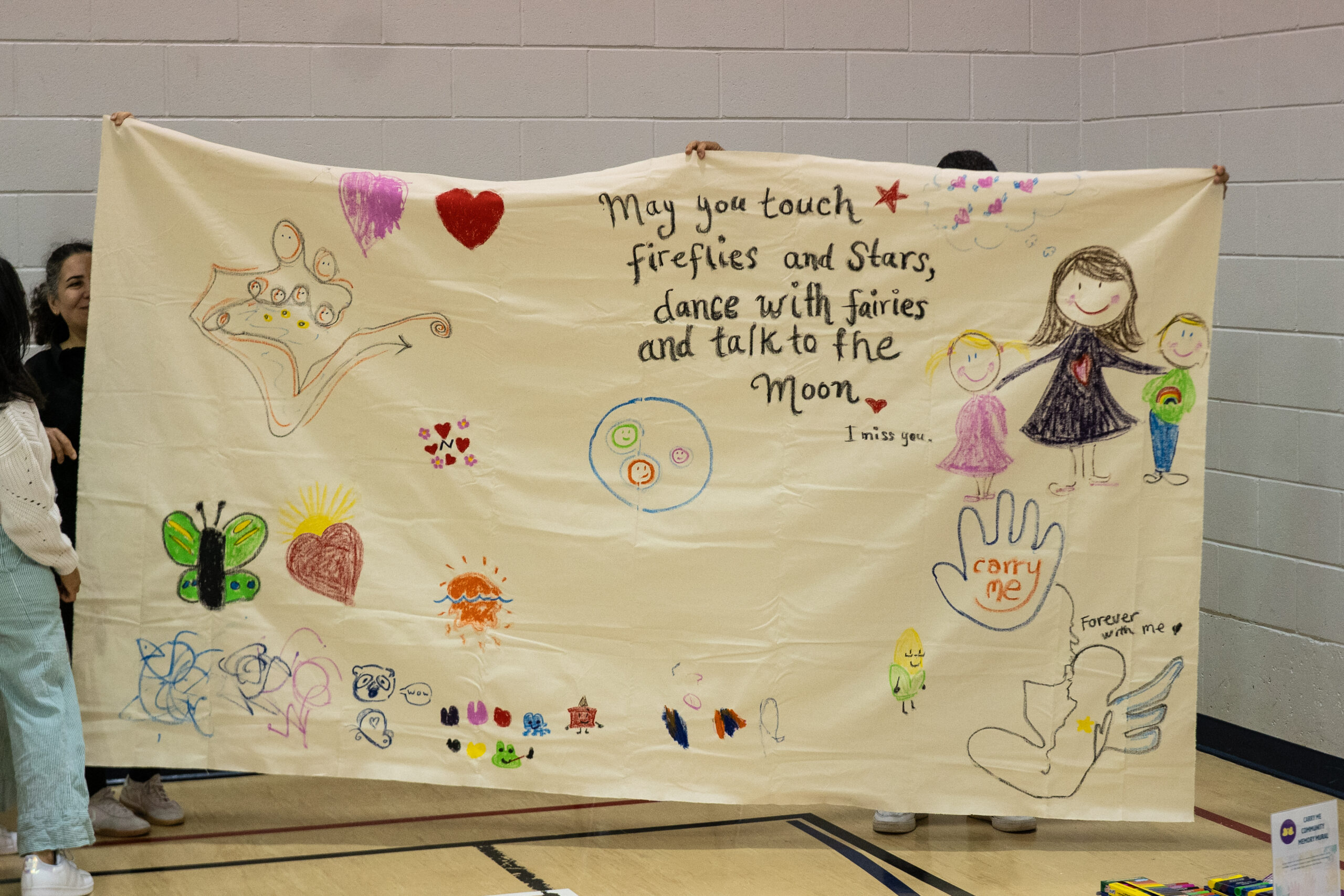 Un espace artistique pour que les familles créent un hommage collectif — chaque membre est invité à dessiner ou peindre quelque chose de significatif pour le bébé qu’il porte dans son coeur.